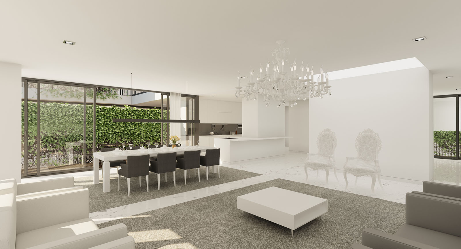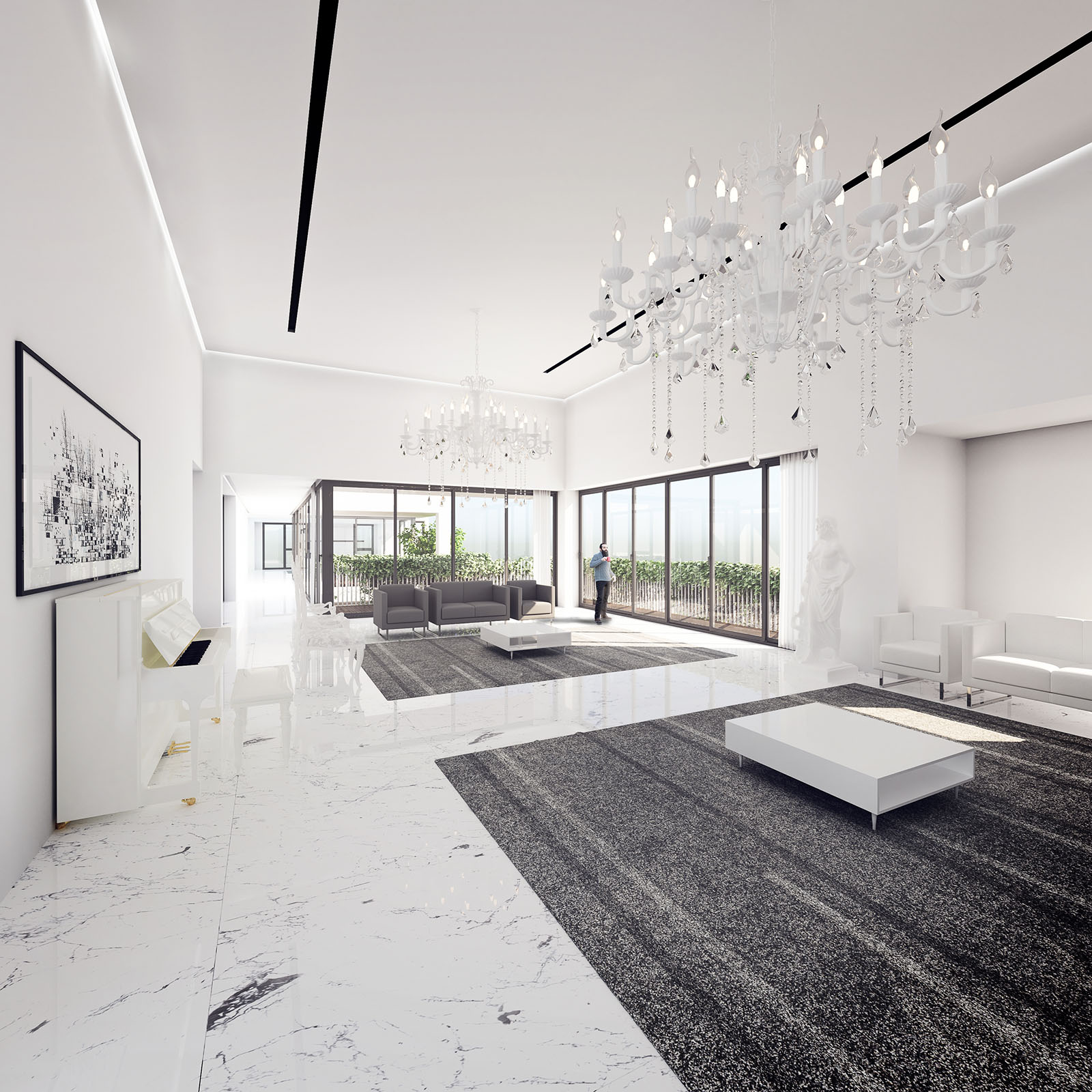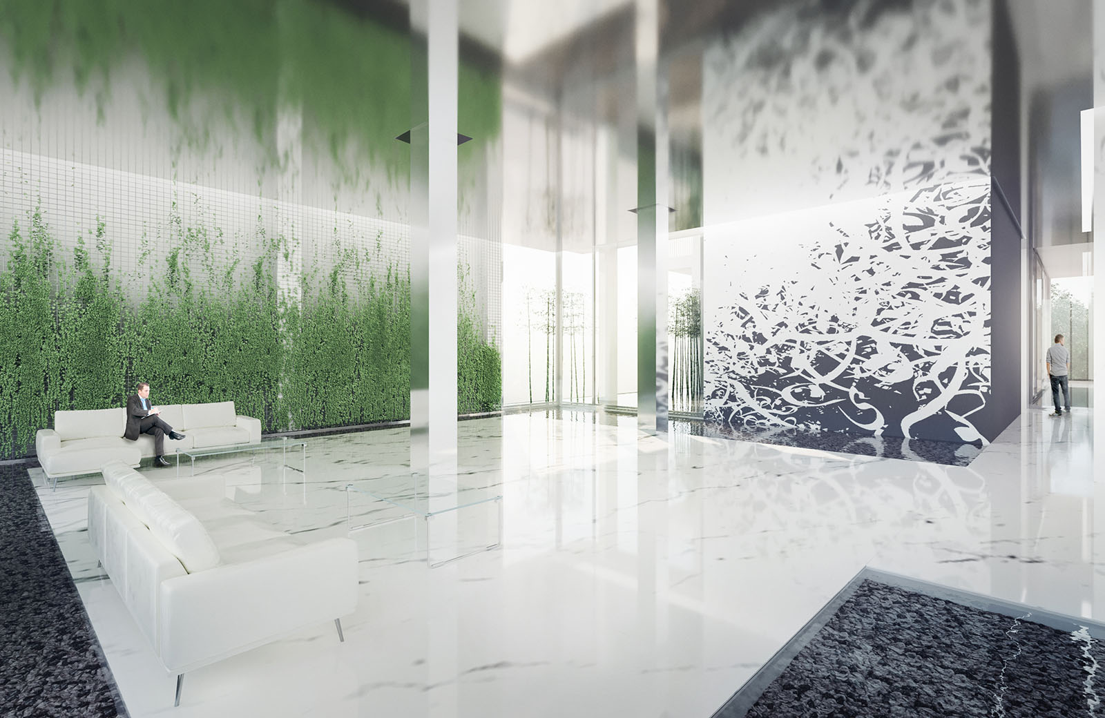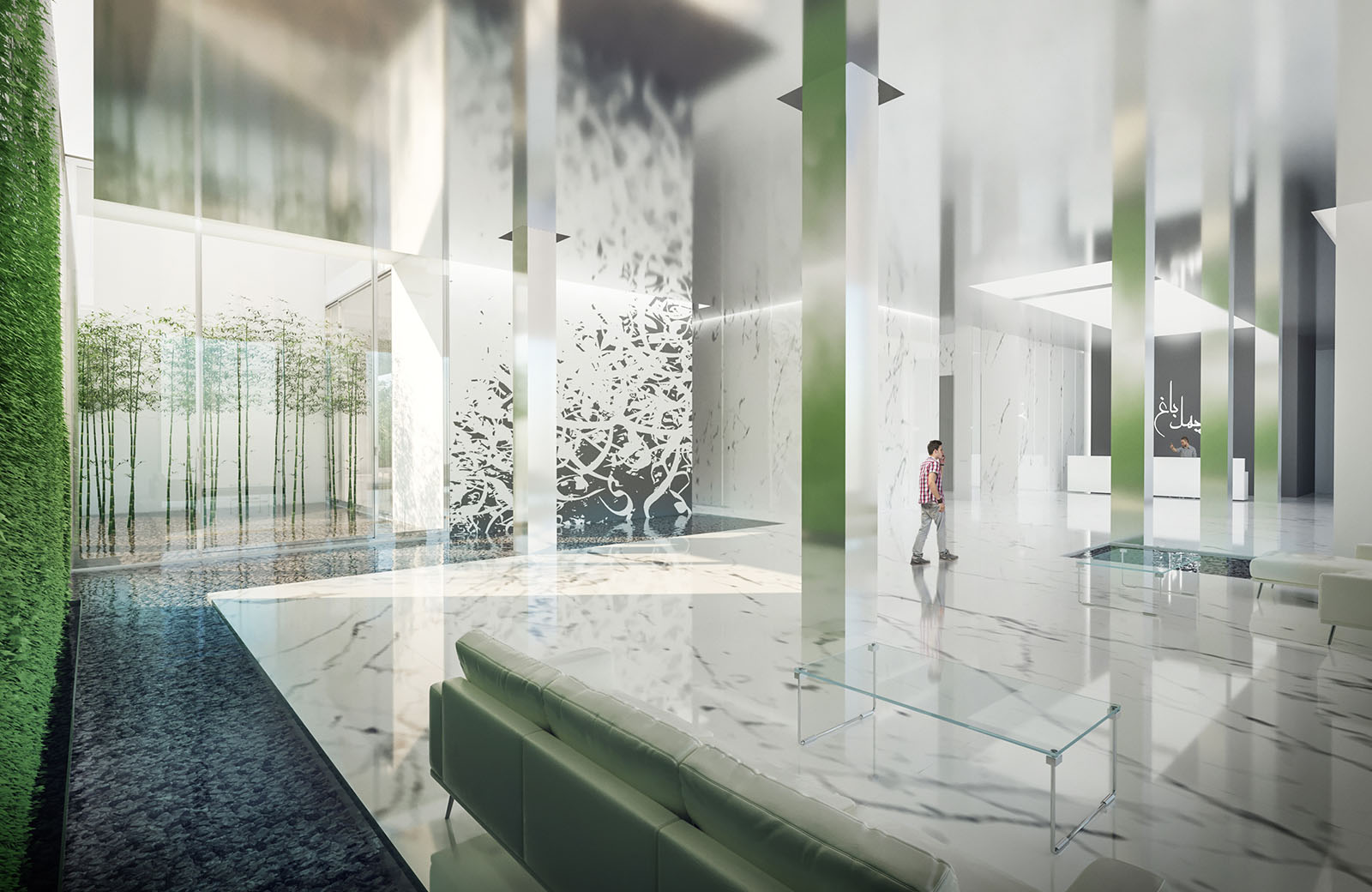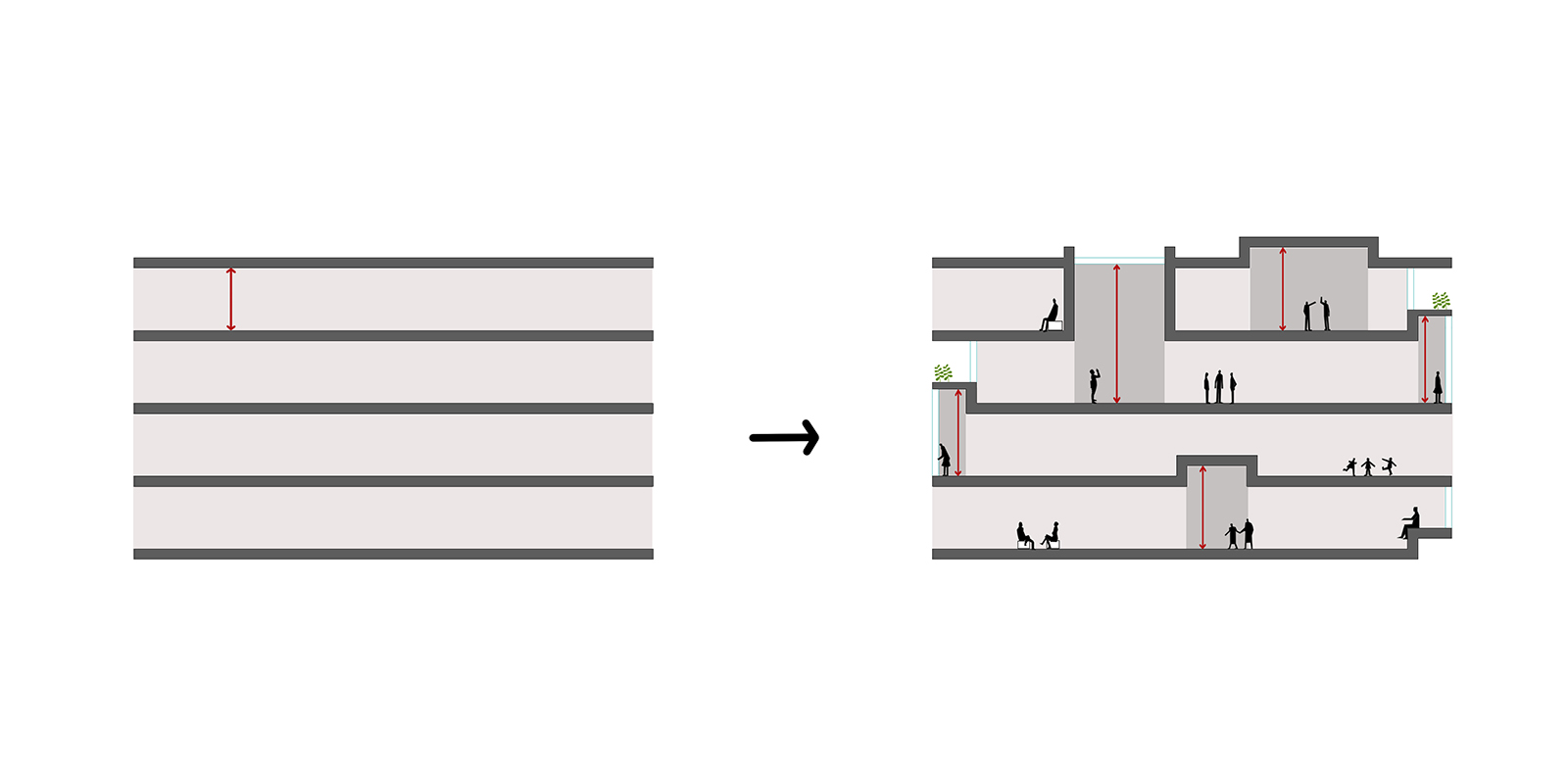 The existing structure suffers from less-than-average floor to ceiling clearances. In order to enhance the qualitative aspects of spatial experience in the interiors, two closely connected but categorically different design strategies are deployed. Where it is possible, the structure is modified in strategic points to increase the height of the interior spaces. In the lobby, a reflective material condition is proposed to create the illusion of height.