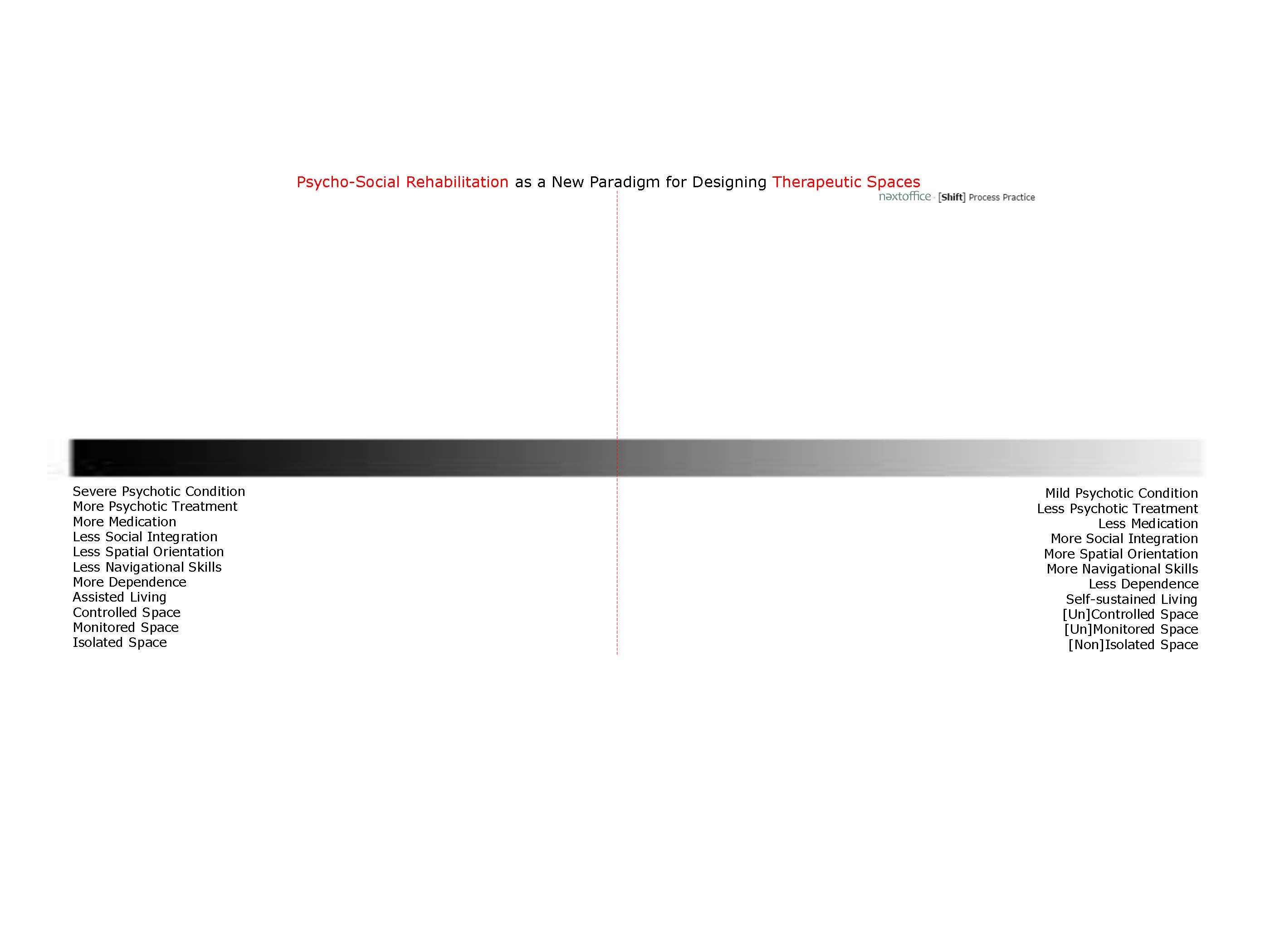 The project is a therapeutic complex, targeting a disfranchised population that mostly suffers from mild to severe schizophrenia. Ehsan NGO will be running this facility among many others, and is very much interested in offering its constituency a “homey experience”. The challenge of design is to create a psycho-social therapeutic setting that is registered as a home as opposed to a hospital ward for its patients.