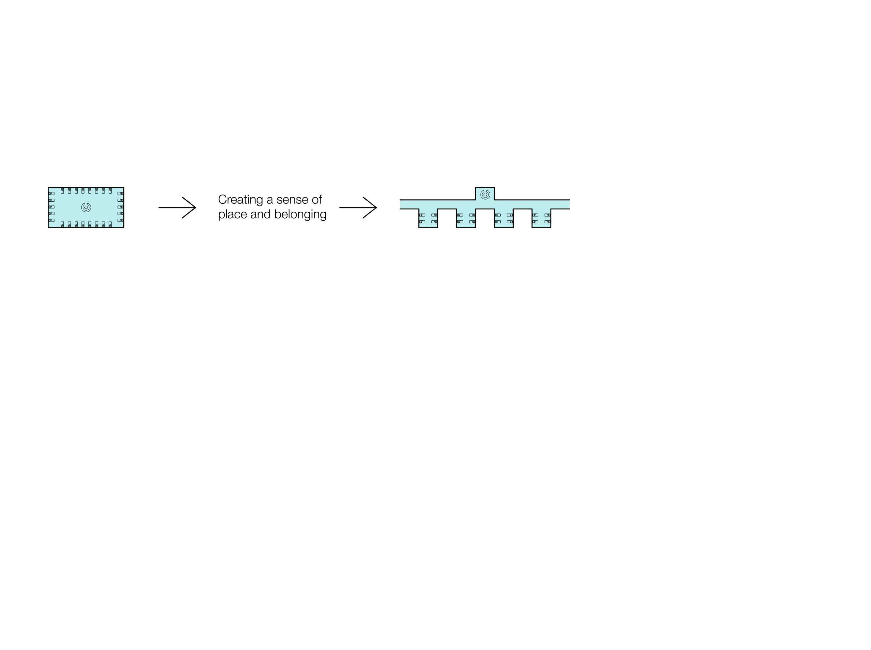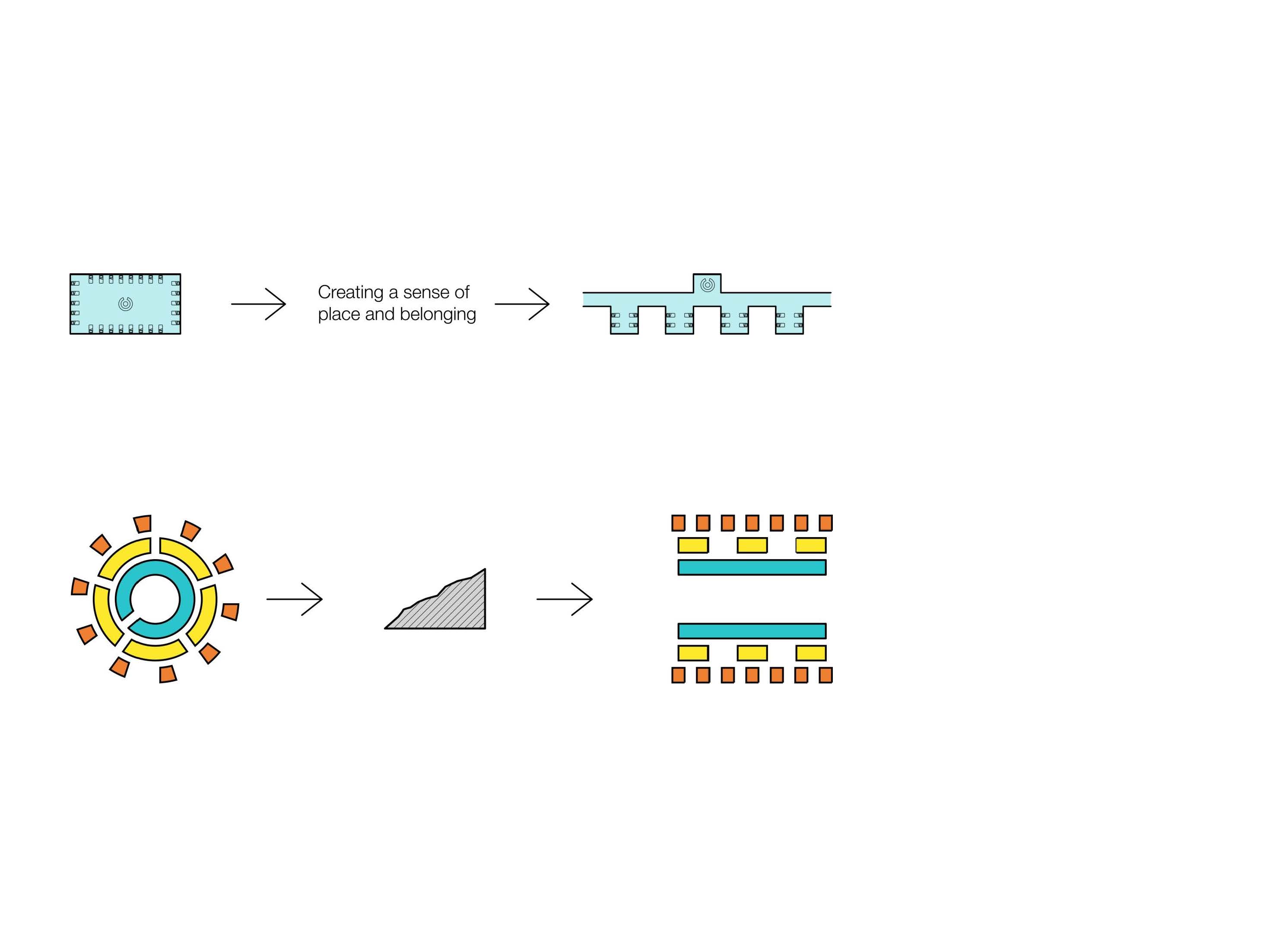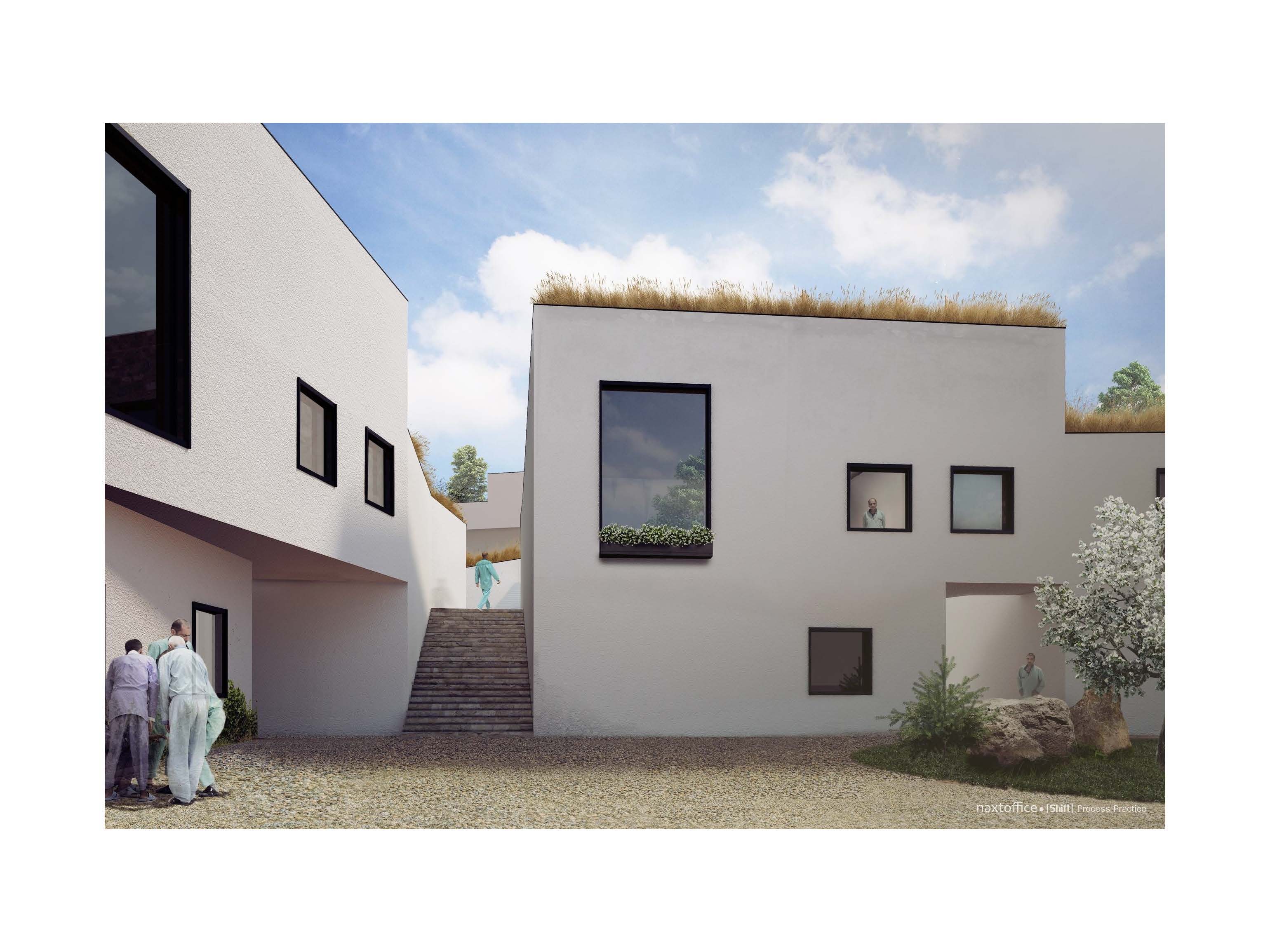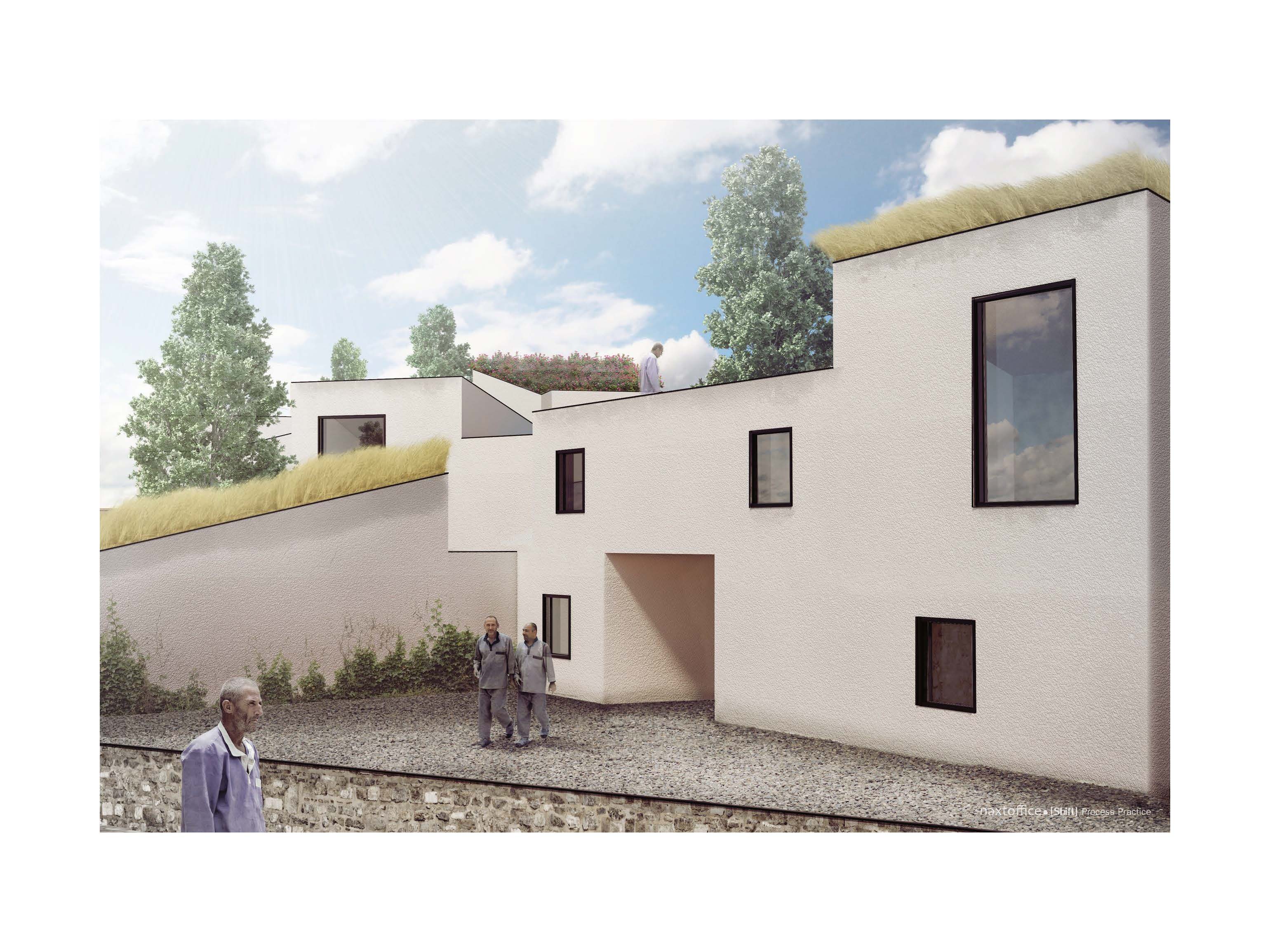 The design also needs to acknowledge the fundamental difference in perceptual and physical capabilities of patients that suffer from mild to severe psychological condition. This gradient of capabilities informs the multi-layer fabric of the complex. In the most outer layer, the inhabitants enjoy a full interaction with the outside world. As one moves towards the heart of the complex, social interactions become more regulated. The patients that are housed in inner layers of the complex will benefit from more professional care as they are in more severe psychological condition. As the patient’s condition improves, and his capacity to interact with the outside world is also further developed, he is relocated to outer layers and moves from shared rooms to co-habitation houses.
